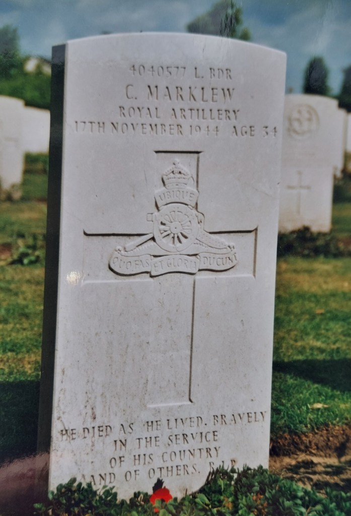 43 men belonging to either the 6th battalion KSLI or 181 field regiment died, either – on active service or, were killed in action. 18 were killed or died whilst training in the U.K, and are buried in or close to their hometown or village. The remainder were killed or died of wounds whilst abroad, and as was the tradition in the previous wars, were buried where they fell, and later interred in Commonwealth War Graves throughout Europe. 4 men are buried in Germany, killed, close to the war’s end. Probably the most tragic recorded on 9th May, the day after the German army surrendered. This poor man who had come through the fighting unscathed, died while the men were celebrating their victory. The last recorded death in October 1945 was Major S.M. Sharp who died in hospital after contracting ‘Infantile paralysis’. I had listened to the personal stories from the men who had literally, to pick up the pieces when their comrades had been killed, so after my book was published, I felt that the only thing left to do was visit the graves of the fallen and pay my respects.