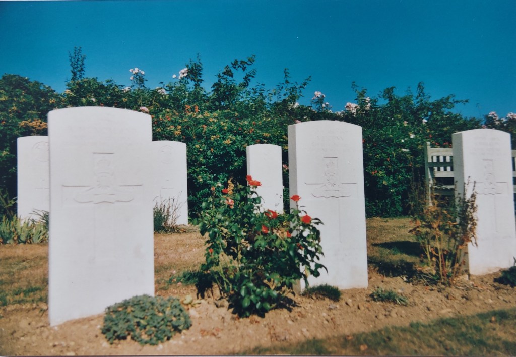 Tilly-Sur-Selles War Cemetery – Julian Cory Wright killed on the first day in action by a Mortar round I/C B Troop 181 Field Regiment. The only officer killed in action with the regiment.
