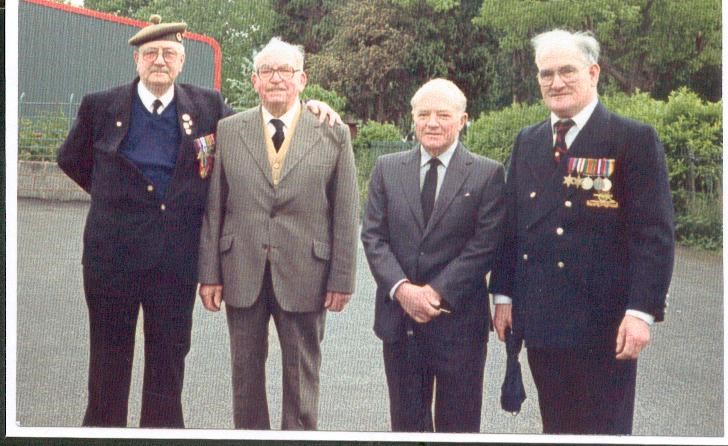 L-R George Cowan, Ted Eden, Fred Parsons and on the right is Percy Lewis. This was taken in 1992 at the funeral of Dick Fletcher.
